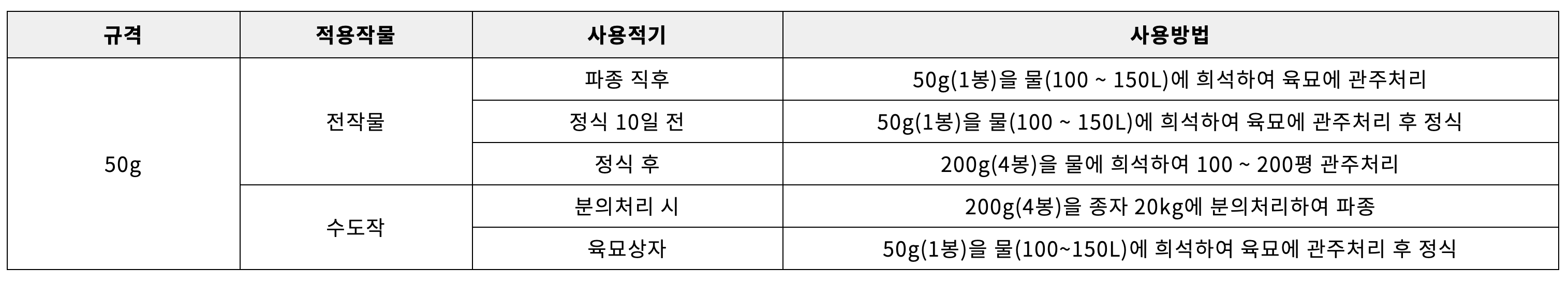 2. 작물의 뿌리 발달을 촉진하여 영양분과 수분흡수능력을 향상시키고