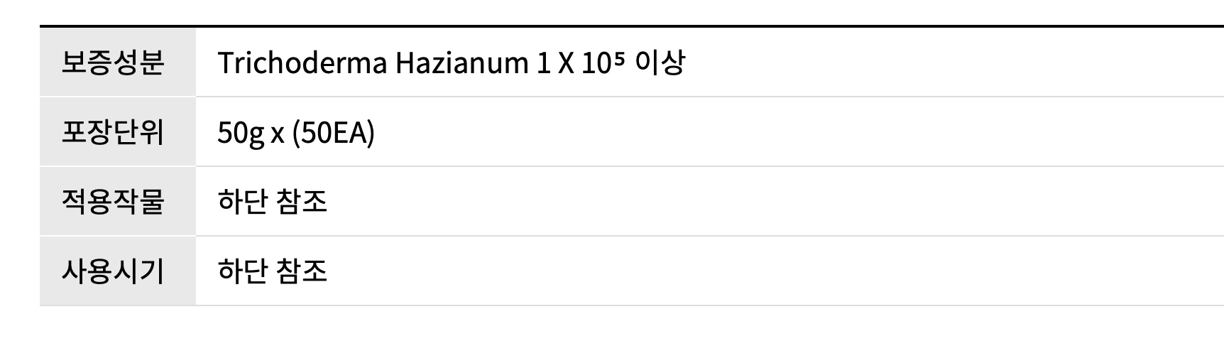 ■ Trichoderma Hazianum 1 X 10⁵ 이상