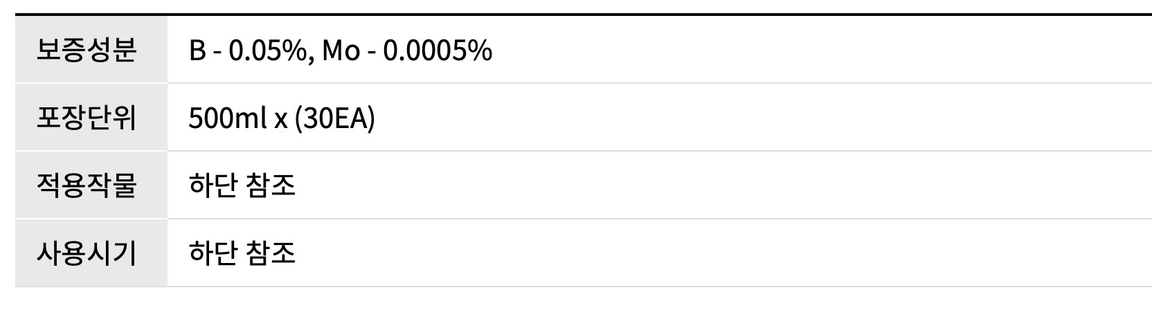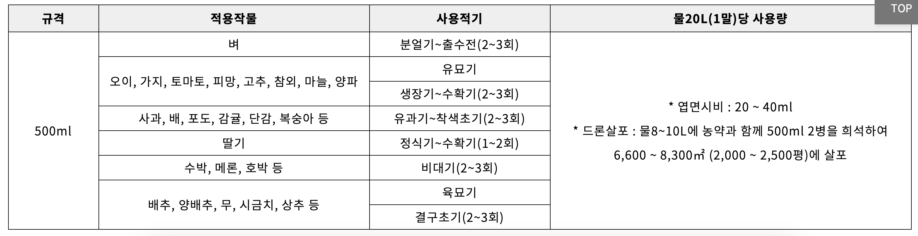 과수류 및 과채류의 꽃눈을 충실하게 하여 개화와 수정을 돕습니다.