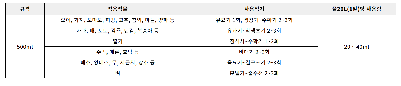 1. 18종 아미노산, 해조추출물 및 비타민류, 당류 등이 과학적으로 배합되어 식물의 생장과 신진대사에 도움을 줍니다.