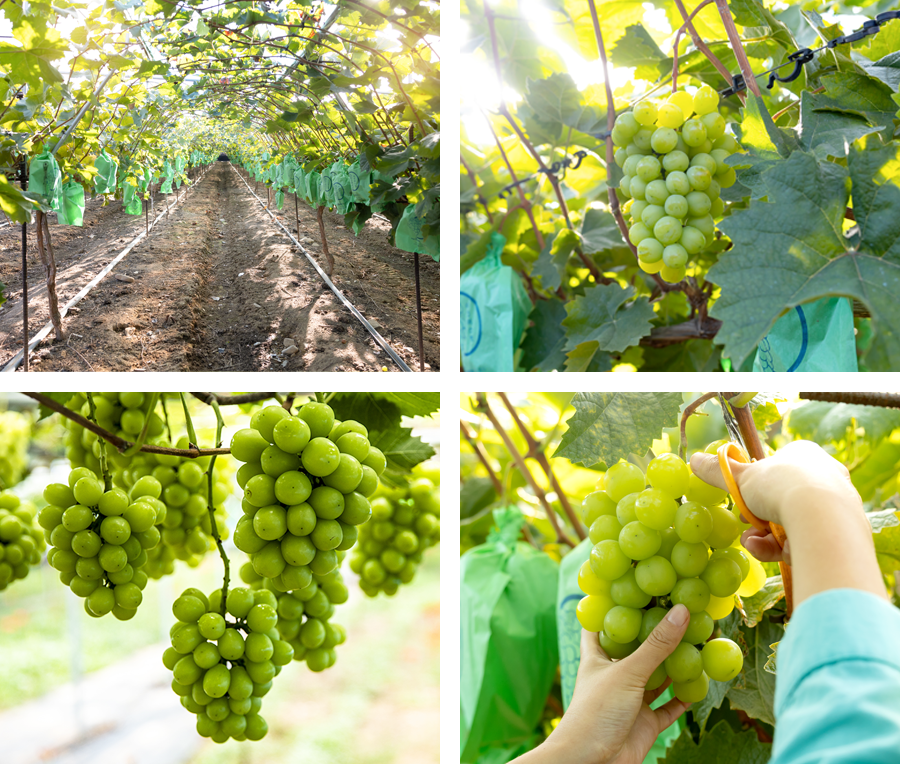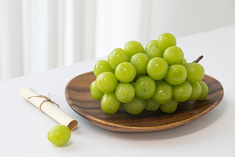 일본에서 만든 청포도 종으로 과육은 단단하고 식감이 아삭하며,머스캣 향이 강하여 씹을수록 망고와 같은 향이 납니다.