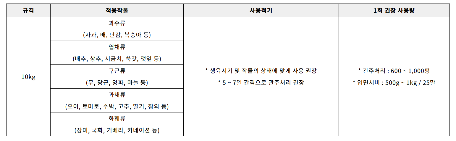 3. 작물의 흡수가 빠르며 기비, 추비 가능