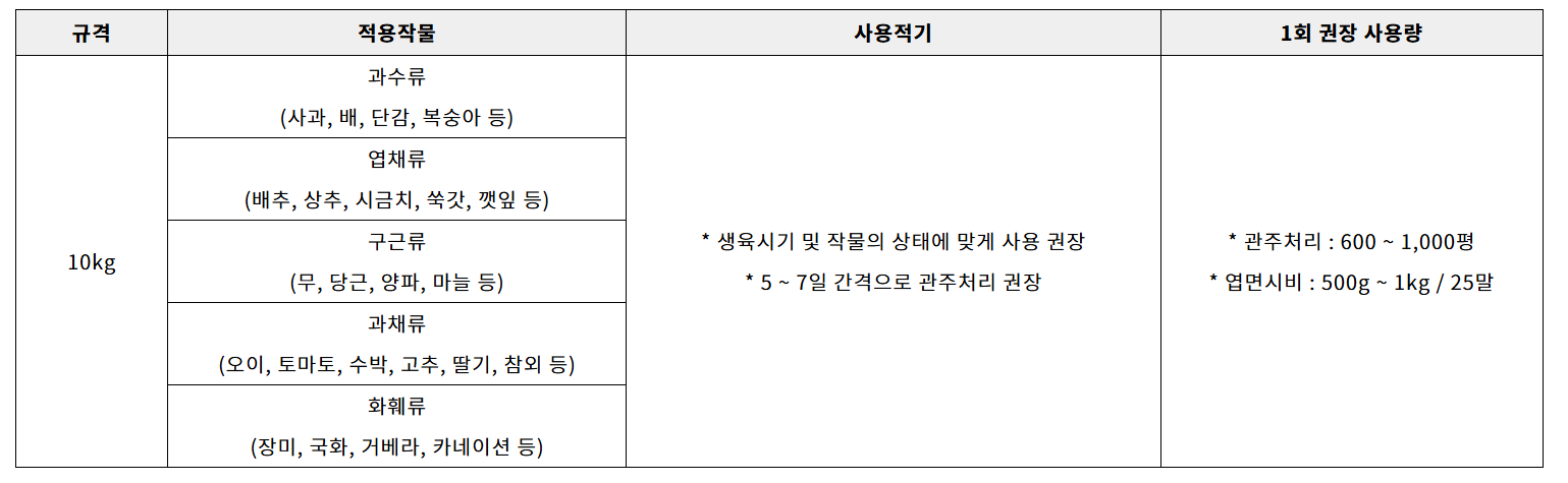 3. 작물의 흡수가 빠르며 기비, 추비 가능