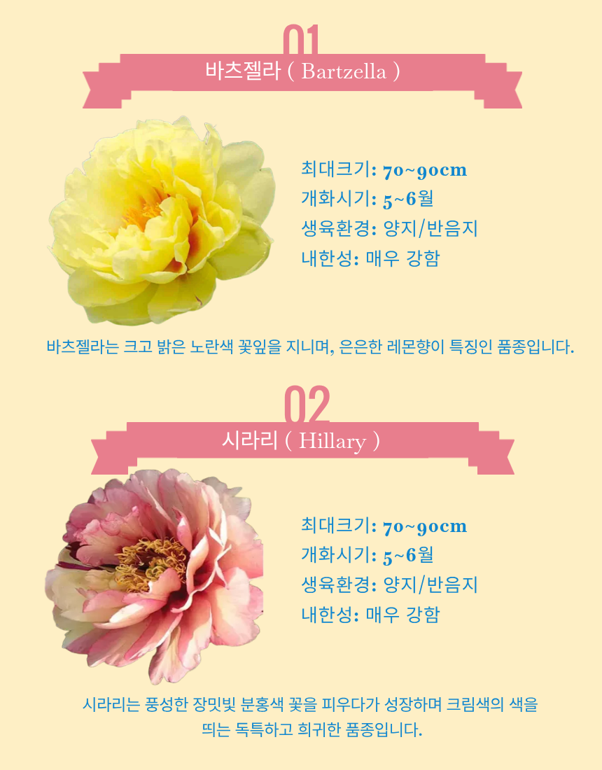 크고 밝은 노란색 꽃잎을 지니며, 은은한 레몬향이 나는 목단+작약의 교배종입니다.