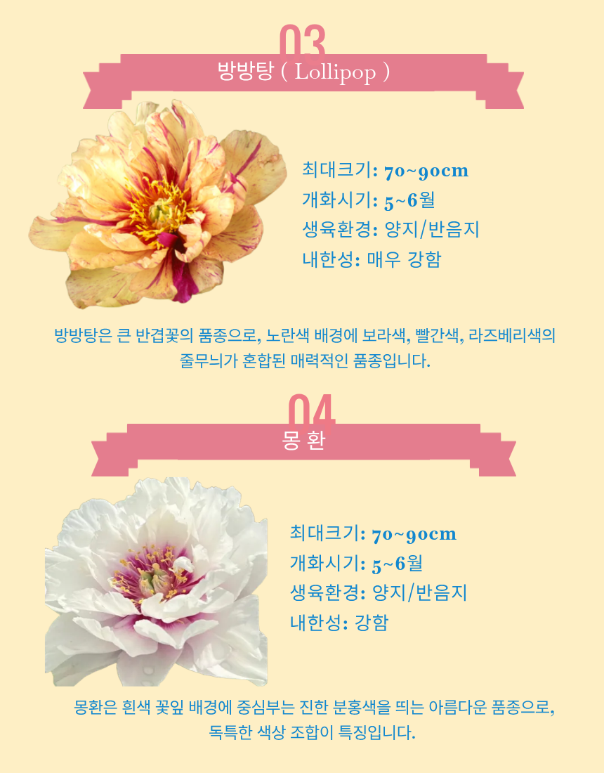 꽃의 색이 아름답고 개화량이 좋은 작약의 장점을